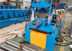 We Xiamen Bogong Machinery is a Chinese roll forming machine manufacturer in Xiamen, Fujian, the roller shutter door guider roll forming machine is one of our machine brand for doors, 20 stations roll forming, 7.5KW motor driving.
